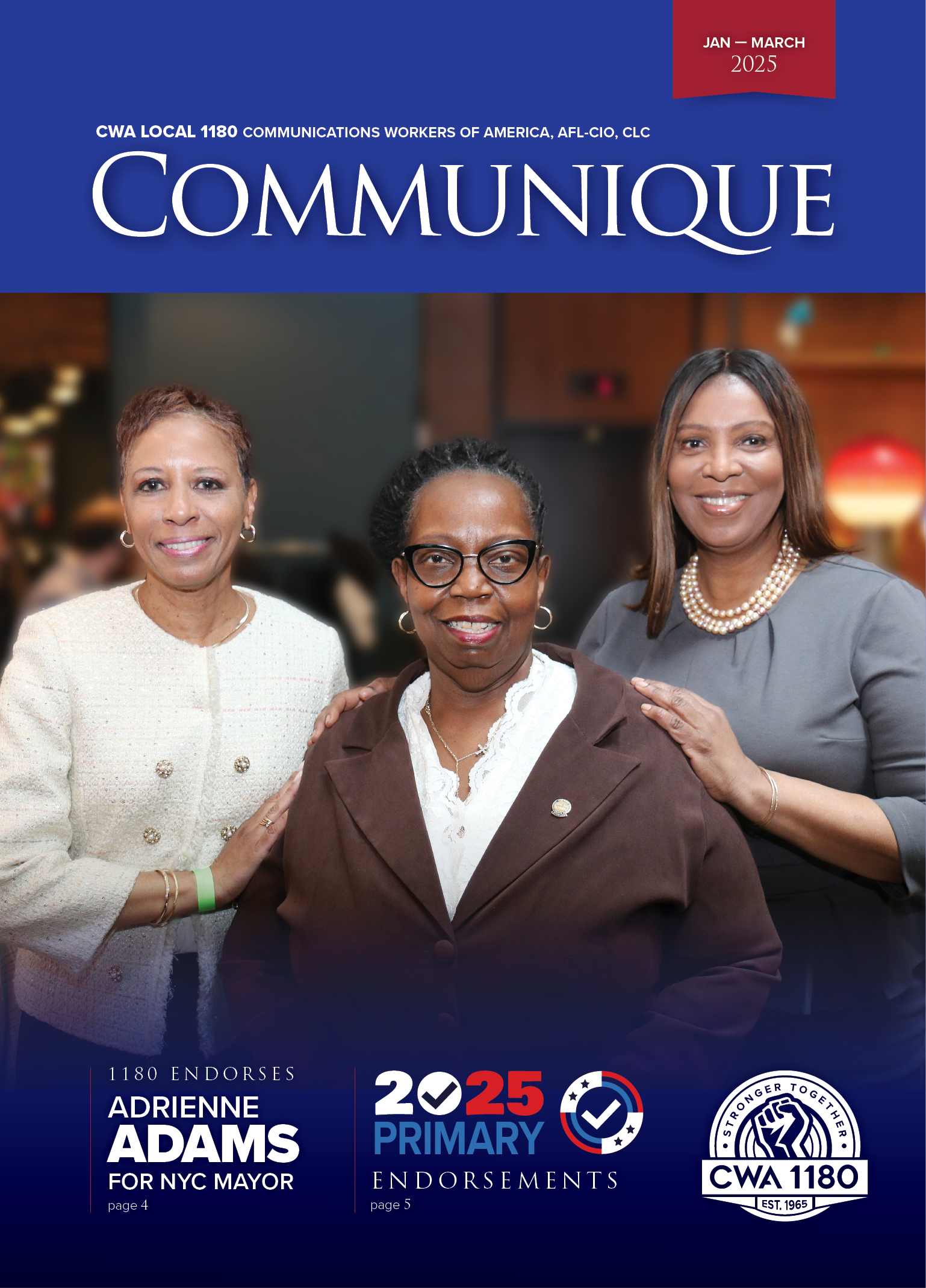 CWA Local 1180’s quarterly magazine, the Communique, has consistently garnered top awards in the Metro New York Labor Communications Council and the International Labor Communications Association contests. Competing against some of the country's best labor publications, the Communique repeatedly stands out in categories for both writing and graphic design, while Local 1180's outreach campaigns and social media programs take the highest of honors.